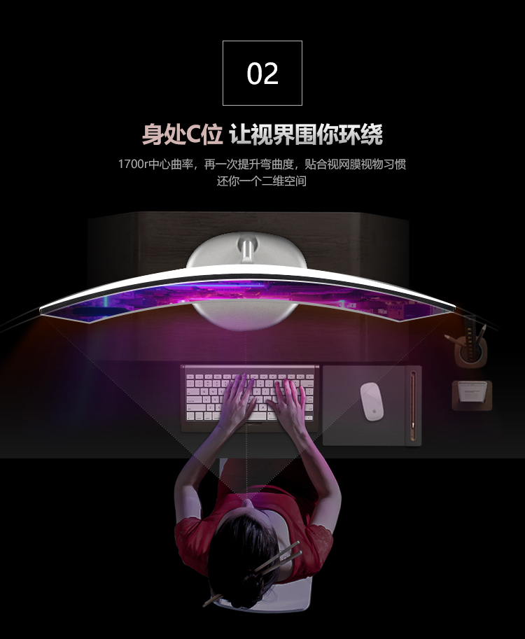 • 特性: 27英寸 曲面 HDMI接口 DP接口 VA广视角 1700R中心曲率 时尚薄型美背外观设计,1.5mm窄边框,5.2mm窄画面黑边,高贵典雅