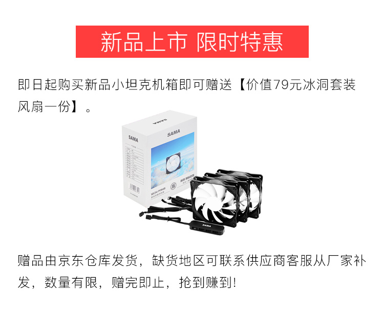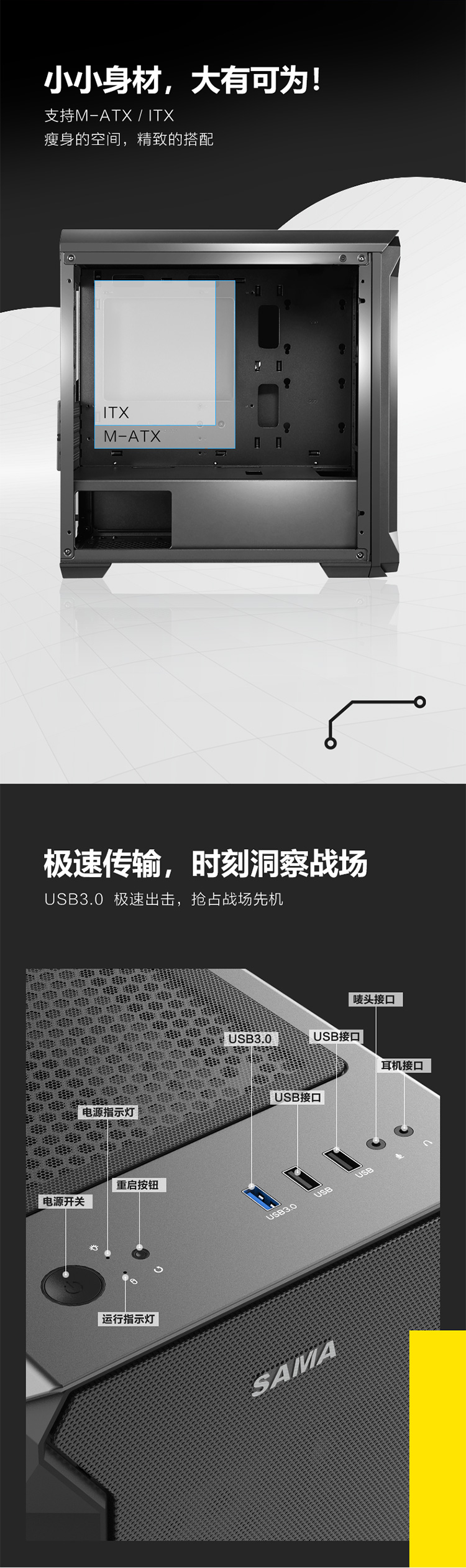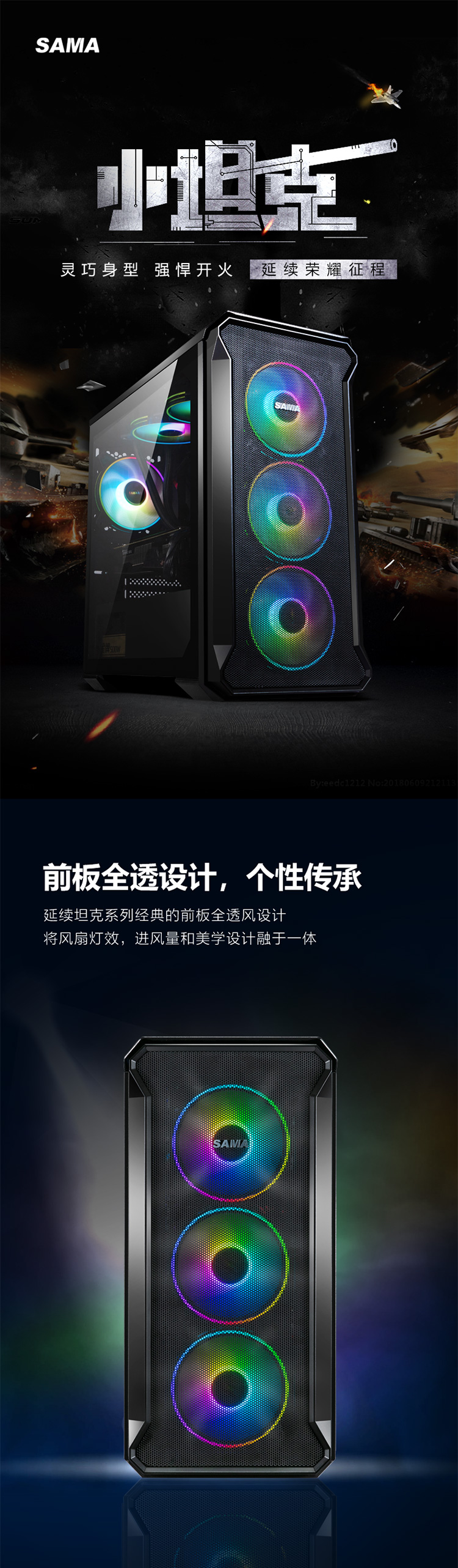 先马(SAMA)小坦克 电脑游戏商务办公小机箱 前板铁网钢化玻璃侧透/宽体五金/支持M-ATX主板/背线独立电源仓