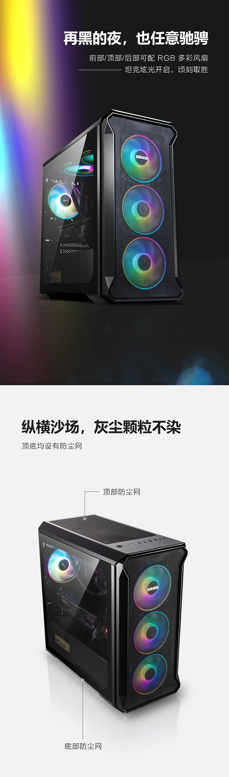 商品名称:先马(SAMA)小坦克 电脑游戏商务办公小机箱 前板铁网钢化玻璃侧透/宽体五金/支持M-ATX主板/背线独立电源仓