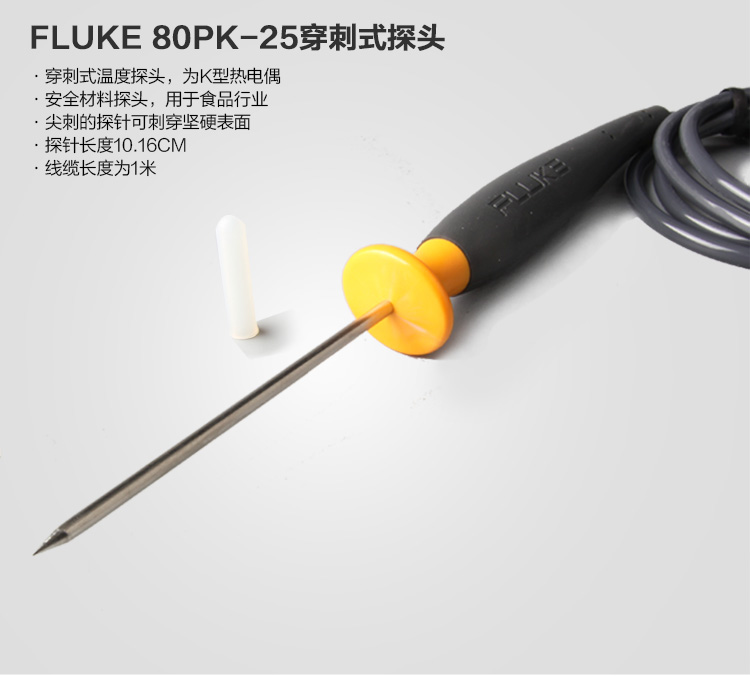 福禄克(FLUKE)80PK-25 刺穿式探针适用于食品检测可刺穿固体表面测温范围:-40℃至350℃(-40℉至662℉)