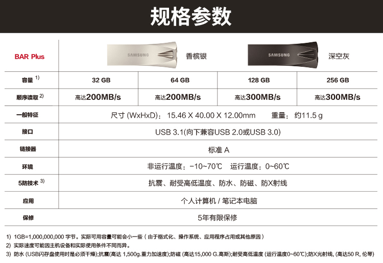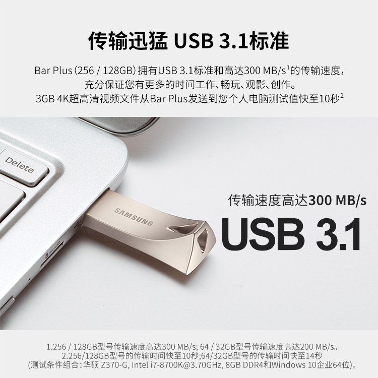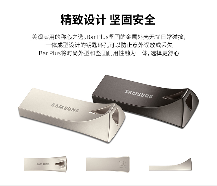 商品名称:三星(SAMSUNG)128GB USB3.1 U盘 BAR升级版+ 香槟银 读速300MB/s 高速便携(Gen 1)(新老包装随机发货)